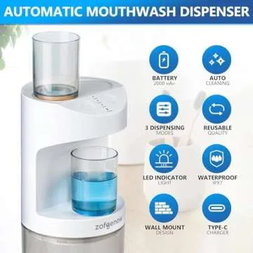Show more Experience revolutionized oral care with our innovative automatic mouthwash dispenser. This sleek and modern device not only enhances your bathroom's aesthetic but also provides an eco-friendly solution for maintaining oral hygiene. Designed with a focus on convenience and sustainability, it is rechargeable and reusable, eliminating the hassle of frequent battery changes and reducing waste.