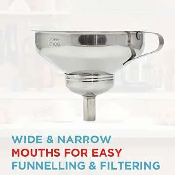 Zoie + Chloe 3-in-1 Stainless Steel Funnel Set - Kitchen Funnels with Detachable Fine Mesh Filter & Strainer for Filtering Herbs, Food Bits - Durable Stainless Steel - Ease to Use, Dishwasher Safe