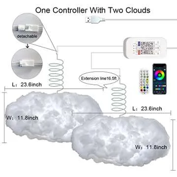 What sets this cloud light apart is its multi-color changing feature that syncs effortlessly with music. With millions of color options to choose from, you can customize the ambiance to fit any mood—be it a lively party or a cozy bedtime retreat. The built-in sensitivity microphone allows the lights to pulsate and change colors in perfect harmony with your favorite tunes, making every moment a visual spectacle.