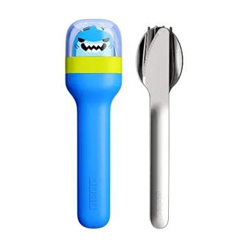 ZOKU Kids Pocket Utensil Set, Shark - Stainless Steel Fork, Knife, and Spoon in Case - Portable Design for Travel, School, Picnics, Camping and Outdoor Home Use