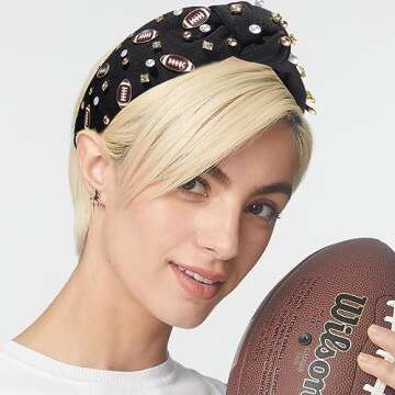 ZOLEAROPY Jeweled Knotted Headband - Pearl Rhinestone Embellished Wide Top Knot Hairband Headpiece for Sports Game Day Hair Accessory Gift