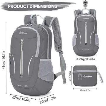 ZOMAKE Ultra Lightweight Packable Backpack 25L - Foldable Hiking Backpacks Water Resistant Small Folding Daypack for Travel(Dimgray)