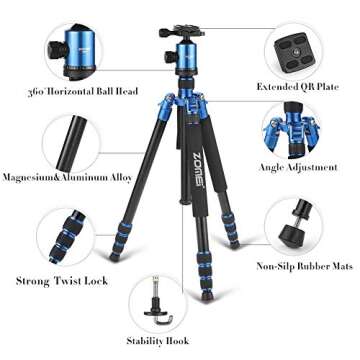 ZOMEI Z818 Tall Camera Tripod 65'' Aluminium Alloy Monopod with 360 Panorama Ball Head Quick Release Plate(Blue)