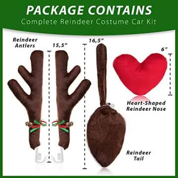Zone Tech Christmas Car Reindeer Antlers and Heart Nose Set with Lights -Rudolph Accessory with Jingle Bell Automotive Costume Decoration for Holiday