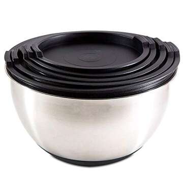 Show more Discover the ultimate culinary companion with our premium mixing bowl set, designed to enhance your cooking experience! Crafted by a renowned brand, this set features a variety of bowls that cater to all your kitchen needs. Each bowl is made from high-quality materials, ensuring durability and longevity. The standout feature of these bowls is their silicone/rubberized bottoms, which provide excellent grip on countertops, preventing any slips while mixing or stirring. No more struggles with wobbly bowls that move around!