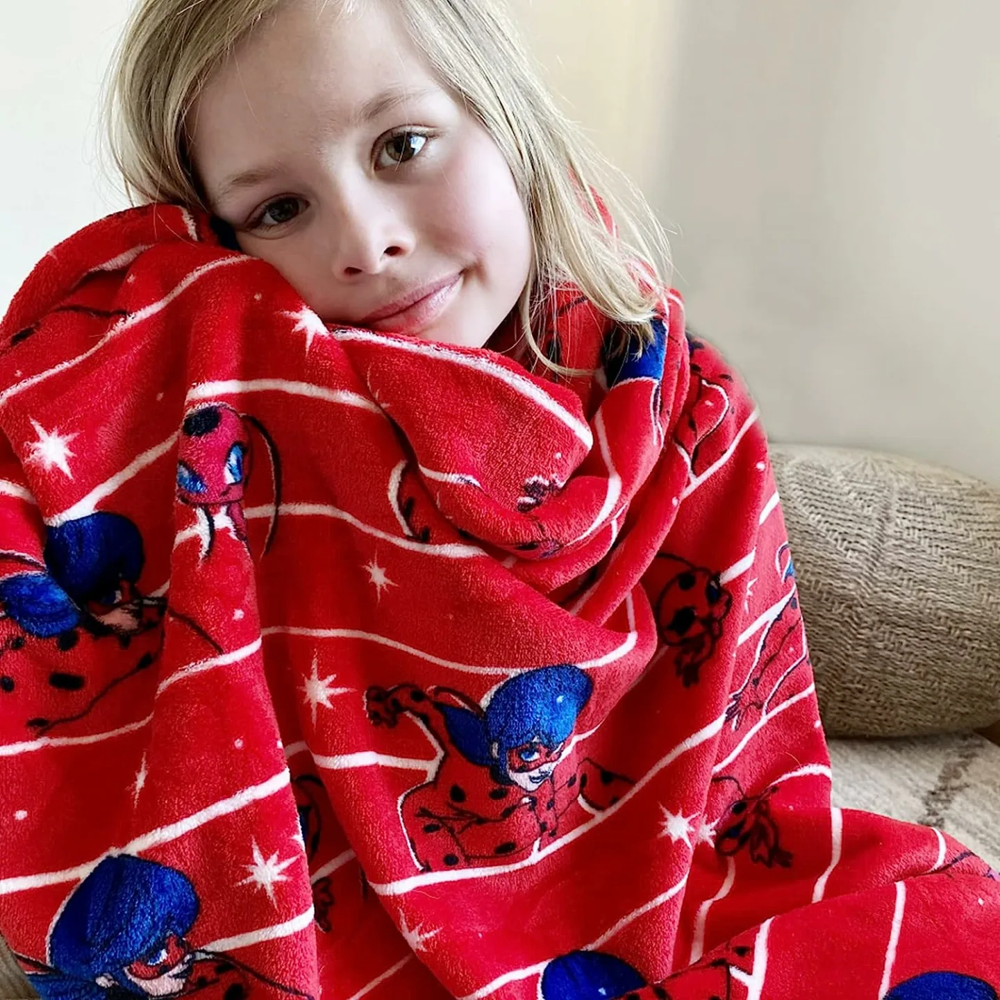 Show more Wrap yourself in the magic of Paris with the officially licensed Miraculous Ladybug throw blanket. Whether you're a dedicated fan of Ladybug and Cat Noir or just looking for a cozy yet stylish addition to your home, this blanket is the perfect choice. Made from premium flannel, it's ultra-soft, durable, and lightweight, providing comfort and warmth through all seasons. With its wrinkle and fade-resistant properties, this blanket retains its vibrant colors and plush feel, ensuring it stays looking new for years to come. The elegant stitching not only adds a touch of sophistication but also enhances the structural integrity, making it a long-lasting addition to your home decor. Perfect for cuddling up on the couch, adding an extra layer to your bed, or gifting to a loved one, this Miraculous Ladybug blanket is versatile and full of charm.