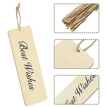 Zonon 36 Pieces Large Size Wood Blank Bookmarks DIY Wooden Craft Unfinished Hanging Tags Rectangle Blank Bookmark Ornaments with Holes and Ropes for Wedding Graduation Party Decor