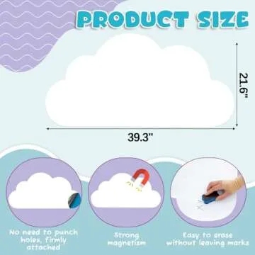 Zonon Magnet Wall Decal 39.3" x 21.6" Cloud Magnetic Whiteboard Contact Paper Adhesive Magnetic Dry Erase White Board Sticker Peel and Stick Whiteboard Wallpaper Roll for Playroom Home Decor(White)