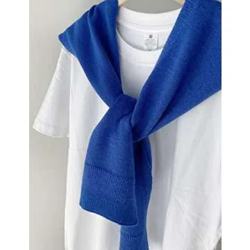 Zontroldy Women's Fashion Sweater Knitted Knotted Shawl Wraps Cape Tops Blouses(0221-Blue-OneSize)