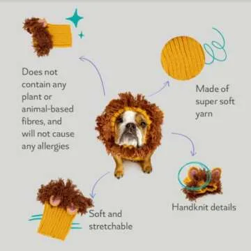 Zoo Snoods Lion Costume - Knit Mane Dog Snood Ear Wrap for Pets, Warm Neck Cover for Halloween and Winter (Medium)