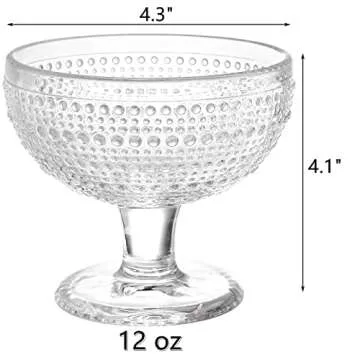 Show more Elevate your dessert experience with the exquisite ZOOFOX 6 Pack Glass Ice Cream Bowl Set. These elegantly crafted bowls are designed not only for functionality but also for creating a visually stunning presentation at any gathering. Each bowl has a generous capacity of 12 oz and measures approximately 4.3" D x 4.1" H, making them the perfect size for serving your favorite sundaes, fruit salads, or elegant parfaits. Crafted from premium lead-free glass, these bowls combine sturdiness with style, adding a touch of sophistication to your dining table.