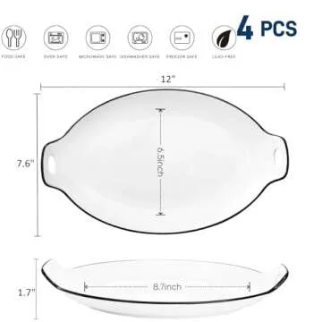 Show more Introducing the ZOOFOX Oval Serving Platter Set of 4, where elegance meets functionality in your kitchen! Crafted from premium food-grade ceramic, these exquisite serving platters not only add a touch of sophistication to your dining experience but are also lead-free and non-toxic, ensuring the safety of your loved ones. Each platter measures a generous 12 inches in length, providing ample space for appetizers, desserts, salads, noodles, and more! Perfect for family gatherings or entertaining guests, these platters are designed to impress.
