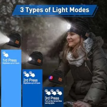 This multifunctional beanie features 5 built-in LED lights that illuminate your path up to 30 feet away. With 2-speed incandescent lights and a flashing function, it's perfect for night runs or late-night dog walks. The lights last up to 8 hours on low and up to 4 hours on high, giving you plenty of usage without frequent recharging. Say goodbye to fumbling for your phone in the dark!