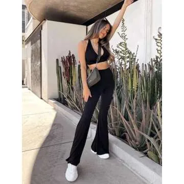 ZOOSIXX Black Flare Yoga Pants for Women, Crossover Soft Bootcut Leggings