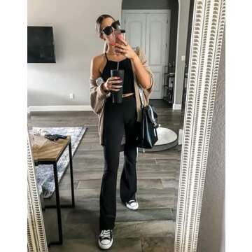 Show moreStep into a world of style and comfort with the revolutionary ZOOSIXX Bootcut Flared Pants. These unique pants boast a V-shaped design that not only manages tummy control but also beautifully accentuates your waist and lifts your butt, providing a fashionable and flattering silhouette. The innovative 4.5-inch wide waistband gently compresses while ensuring that you can move with ease—no more worrying about chaffing or irritation! The fabric is a perfect blend of softness and stretchability, guaranteeing a perfect fit for any occasion.
