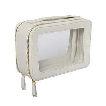 ZOOX Clear Jetset Case, Jumbo Size, 2-Layer Compartments, Chic Cosmetics Makeup Bag for Travel (White Ivory)