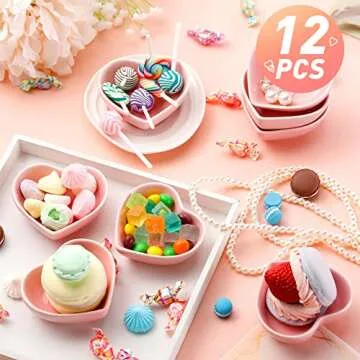 Zopeal 12 Pcs Heart Shaped Bowls Ceramic Dishes Heart Plates Multipurpose Salad Appetizer Plates Cooking Gift for Candy Sauce Sushi Dipping Serving Wedding Anniversary (Pink)