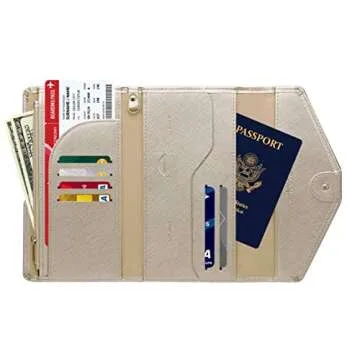 ZOPPEN Passport Holder Women/Men, Multi-purpose Rfid Blocking Travel Passport Wallet (Ver.4) Travel Essentials Tri-fold Document Organizer Holde, Gold