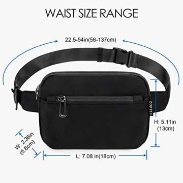 Show moreIntroducing the ZORFIN Fanny Packs for Women Men, a stylish and practical accessory that redefines convenience for the modern adventurer. Crafted from premium, water-resistant nylon, this fanny pack is designed to be your go-to companion for various occasions, whether it’s a vibrant day at the theme park or an invigorating morning run. With its spacious and soft-lined interior, your valuables are protected against friction and damage, assuring safety and peace of mind. The sleek black design elevates your fashion game while ensuring unmatched functionality, making it an ideal choice for those who appreciate style and substance.