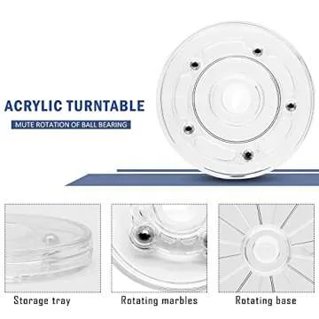 Show more Transform your storage space with the Zorveiio 2Pcs 4” Clear Acrylic Turntable Organizer. Designed with premium quality acrylic, these turntables marry durability with elegance, adding a modern touch to any room. Their 360° rotation capability ensures easy access to your favorite items, while the clear design maintains the aesthetic of your decor—perfect for showing off collectibles, spices, or art supplies. With a robust construction that withstands weights up to 20kg (44lb), each organizer promises longevity and strength, making them a worthwhile investment for your home organization needs.