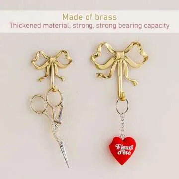 ZORZA 2Pcs Multi-Purpose Bow-Knot Brass Screw Hooks Retro Wall Hook Bow Shaped Practical Bow Hook Gold Wall Hooks for Bathroom Bedroom Perfect for Hanging Hats Towels Coats
