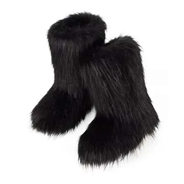 ZOSCGJMY Faux Fur Boots for Women Fuzzy Fluffy Furry Round Toe Suede Winter Snow Boots Flat Shoes Black-2 6