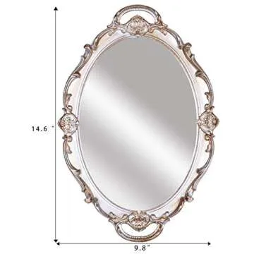 Show more Introducing the Zosenley Polyresin Ellipse Antique Decorative Mirror Tray, a stunning blend of elegance and functionality designed to elevate your home decor or enhance your special occasions. Measuring 9.8 inches by 14.6 inches, this exquisite tray features a luxurious golden-gray carving along its edge, making it not just an organizer for cosmetics and jewelry but also a captivating centerpiece for any living space. Crafted from high-quality polyresin, this decorative mirror tray ensures durability while providing a touch of sophistication and charm to your environment.