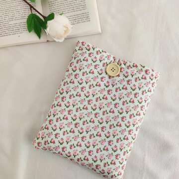 Zosiana Designs Floral Book Sleeve - Elegant Book Cover with Wooden Button, Cotton Padded Protector for Paperbacks & Hardcovers, Ideal for Book Lovers, Durable Design, 10.6x8.7 inches (White-Roses)