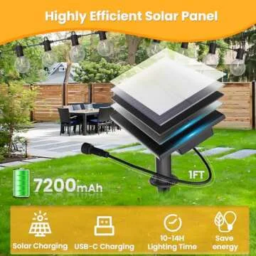 ZOTOYI Solar String Lights Outdoor Waterproof IP65 100FT with USB Port and 50+2 Shatterproof G40 Bulbs, Up to 8-12 Hours for Using, LED Solar Powered Patio Lights for Outside, Patio, Porch, 2200K