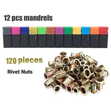 ZSY 16" Rivet Nut Tool, Professional Rivet Nut Tool Setter Kit Including 12 Metric and SAE Mandrels, 120Pcs Assorted Rivet Nuts, Rugged Carrying Case
