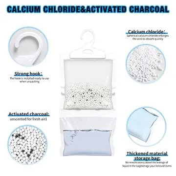 ZSZMFH 15 Pack Moisture Absorber Hanging Bag, Charcoal Smell Remove Damp Musty Smell,Hanging Closet Dehumidifier Bags with 25g of Activated Charcoal (220g/pack)