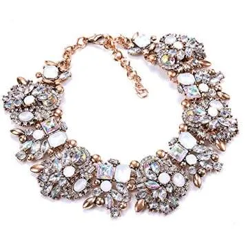Zthread Bib Statement Necklace Rhinstone Beads Collar Necklace Colorful Crystal Choker Collar Necklace Women Fashion Jewelry Necklace (White)