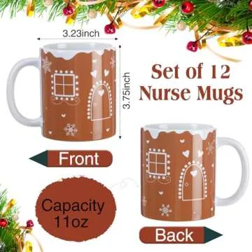 Zubebe 6 Pcs Christmas Coffee Mugs Set 11oz Gingerbread Ceramic Coffee Cups Stackable Cocoa Milk Tea Holiday Mugs Christmas Party Decor Gift for Women Family Friends Colleagues