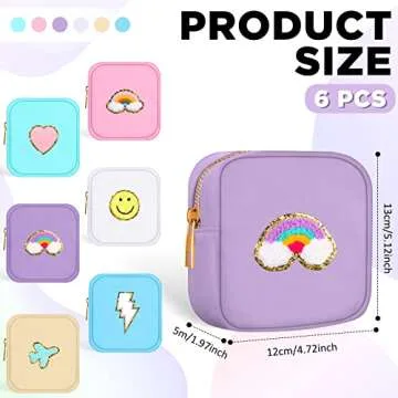 Zubebe 6 Pcs Preppy Patch Cute Makeup Bags Toiletry Bags Skincare Pouch Chenille Letter Nylon Bag for Purse Small Zipper Cosmetic Makeup Pouch Preppy Things for Travel(Cute Color)
