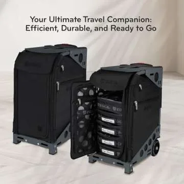 ZUCA Oxford Pro Artist Case - Professional MakeUp Case w/Slate Frame & Black Bag, Includes 5 Vinyl Utility Pouches & Travel Case Cover, Telescoping Handle, Rolling Wheel For MakeUp Artist & Creatives