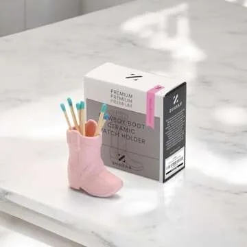 ZUHSAN cowboy match holder, Home decor ceramic match holder, cowboy boot match holder, with striker, MATCHES NOT INCLUDED (Pink)