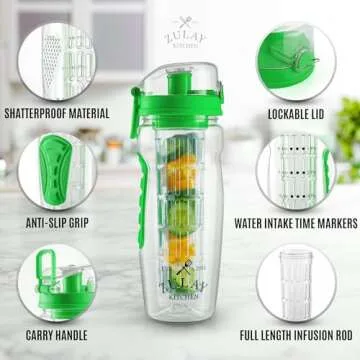 Zulay 34 oz Large, Leakproof Fruit Infuser Water Bottle with Anti-Slip Grip - Men and Women's Ideal Fitness Gift Or For Gym, Camping, and Travel - Energy Green