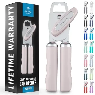 Show more Introducing the Zulay Kitchen Heavy Duty Stainless Steel Can Opener, a must-have for everyone who enjoys hassle-free cooking and deserves high-quality kitchen tools. Designed with a focus on durability, this can opener features a rust-proof stainless steel construction and a sleek, ergonomic design that ensures easy operation every time. Whether you’re fumbling with a tricky can or simply prepping for your next meal, the Comfy Grip Can Opener will become your reliable partner in the kitchen. The beautiful almond color not only complements your kitchen aesthetic but also ensures it stands out in your drawer, making it easily accessible whenever you need it. With a lifetime warranty backed by the Zulay Guarantee, you can purchase with confidence knowing that quality and customer satisfaction are always the top priorities.