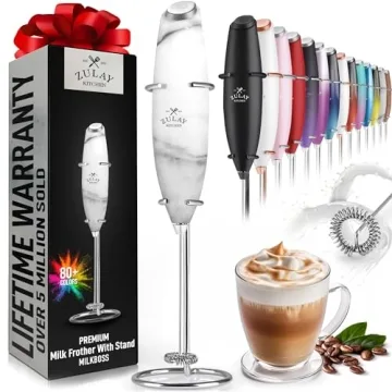 Show moreExperience the magic of café-quality beverages at home with the Zulay Kitchen Powerful Milk Frother Wand. This ultra-fast handheld drink mixer is engineered to transform your coffee routine, making every morning an indulgent experience. Crafted for coffee lovers, this electric whisk effortlessly froths milk in seconds, creating rich, creamy foam perfect for lattes, cappuccinos, frappés, matcha, and more. Its sleek design and powerful performance make it a standout addition to any kitchen.