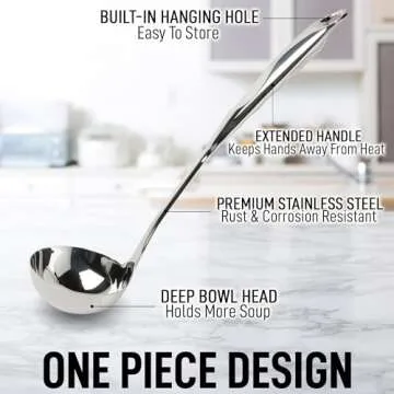 Zulay Kitchen Stainless Steel 13" Soup Ladle - Comfort Grid Steel Ladle with Long Handle and Ample Bowl Capacity Perfect for Stirring, Serving Soups and More - Heavy-Duty Metal Ladle