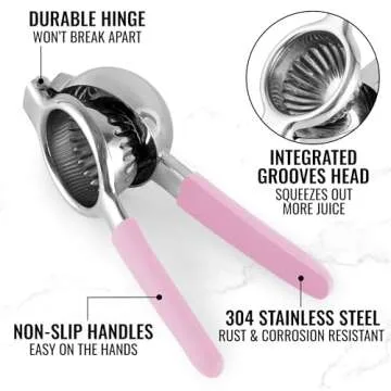 Zulay Lemon Squeezer Stainless Steel with Premium Heavy Duty Solid Metal Squeezer Bowl and Food Grade Silicone Handles - Large Manual Citrus Press Juicer and Lime Squeezer Stainless Steel (Pink)