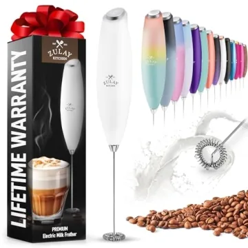 Show moreWelcome to a transformative coffee experience with the Zulay Milk Frother, the quintessential device for true coffee aficionados! Designed for those who appreciate the finer details in every cup, this milk frother elevates your morning ritual and brings café-quality beverages right into your comfortable kitchen. With its powerful 13,000 RPM motor and expertly crafted 25 spiral rings, this frother whips up decadent foam quickly and seamlessly. Say goodbye to mediocre drinks and hello to luxurious, rich foam that will take your lattes, cappuccinos, and hot chocolates to the next level. Not only does it create scrumptious drinks, but it does so with ease and elegance!