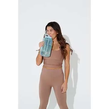 Zulu Goals 64oz Large Half Gallon Jug Water Bottle with Motivational Time Marker, Covered Straw Spout and Carrying Handle, Perfect for Gym, Home, and Sports, Dusty Blue