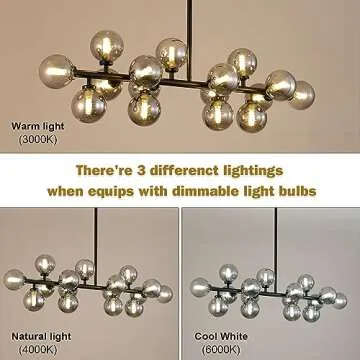 Show more Illuminate your space with the exquisite Zunkoglory Black Modern Sputnik Chandelier, a masterful blend of simplicity and sophistication that complements a wide range of interior designs. Perfectly suited for mid-century modern aesthetics or contemporary settings, this chandelier serves as both a beautiful lighting solution and a stunning statement piece. With 16 lights evenly distributed, it offers remarkable luminosity while casting an enchanting glow throughout your living room or dining area. Each glass bubble is designed to rotate 360 degrees, allowing you to direct light precisely where you need it, enhancing the ambiance of any room.