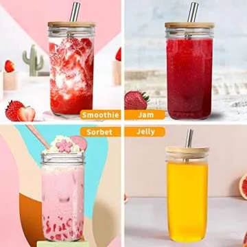 zunmial 2 Pack Smoothie Cup, 24oz Mason Jar with Lid and Straw, Mason Jar Cups, Bubble Tea Cups, Mason Jar Drinking Glasses