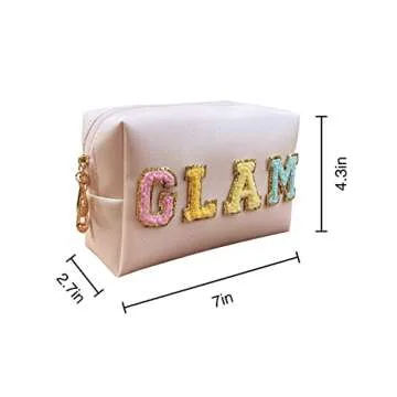 Show moreIntroducing the ZUNUONUO Preppy Stuff Chenille Letter Pouch, a delightful cosmetic bag designed to make your beauty routine not just easier but also stylish. Crafted from high-quality, water-resistant PU leather, this adorable pouch highlights colorful chenille letter patches that give it a playful, retro vibe reminiscent of high school letterman jackets. With an eye-catching shell gold finish and a pearlized metallic sheen, this bag adds a touch of glam while being a functional accessory for storing your essentials. Its ample storage space of 7*2.7*4.3 inches ensures you can easily carry your makeup and skincare products, whether for daily use or travel. Not only is it durable and easy to clean, but the double zipper closure, made from quality alloy, offers effortless access to your belongings.