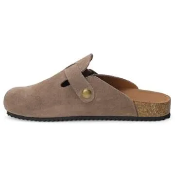 Show more Discover the ultimate in comfort and style with the ZUSERIS Women's Men's Suede Leather Clogs. These classic clogs are expertly crafted from 100% genuine suede fabric, making them a luxurious addition to your footwear collection. The addition of a cork midsole and durable EVA sole offers a perfect blend of softness and non-slip stability. Whether you're lounging at home or stepping out for errands, these clogs promise to keep your feet happy all day long.