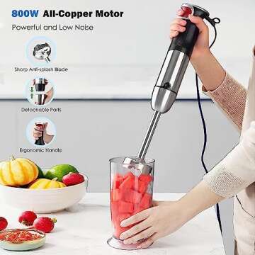 Show more Introducing the ultimate kitchen companion, a high-performance immersion blender that revolutionizes your cooking experience! Designed for culinary enthusiasts and home cooks alike, this immersion blender offers a seamless blend of functionality and convenience. With its powerful motor and user-friendly interface, you can make soups, sauces, and smoothies with less effort than ever before. The sleek design not only adds a modern touch to your kitchen but is also compact for easy storage.