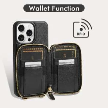 ZVE for iPhone 13 Pro Max Wallet Case, Card Holder Crossbody Phone Case for Women, Zipper Leather Purse with Wrist Strap, RFID Blocking Cover for iPhone 13 Pro Max (6.7 inch, 2021)- Black