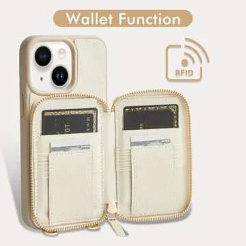 Show moreIntroducing the ZVE for iPhone 14 Wallet Case Crossbody in a chic beige hue. This stylish and practical zipper phone case is elegantly designed for the iPhone 14, which boasts a sleek 6.1-inch display and advanced 5G capabilities. Crafted with attention to detail, this wallet case not only keeps your smartphone securely housed but also acts as a compact organizer. Its RFID blocking design ensures your personal information stays safe from electronic theft, giving you peace of mind every time you step out.